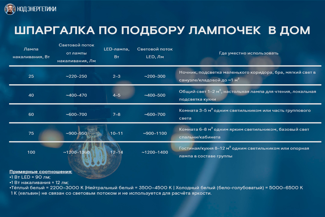 ℹ️1 Вт накаливания ≈ 12 Лм